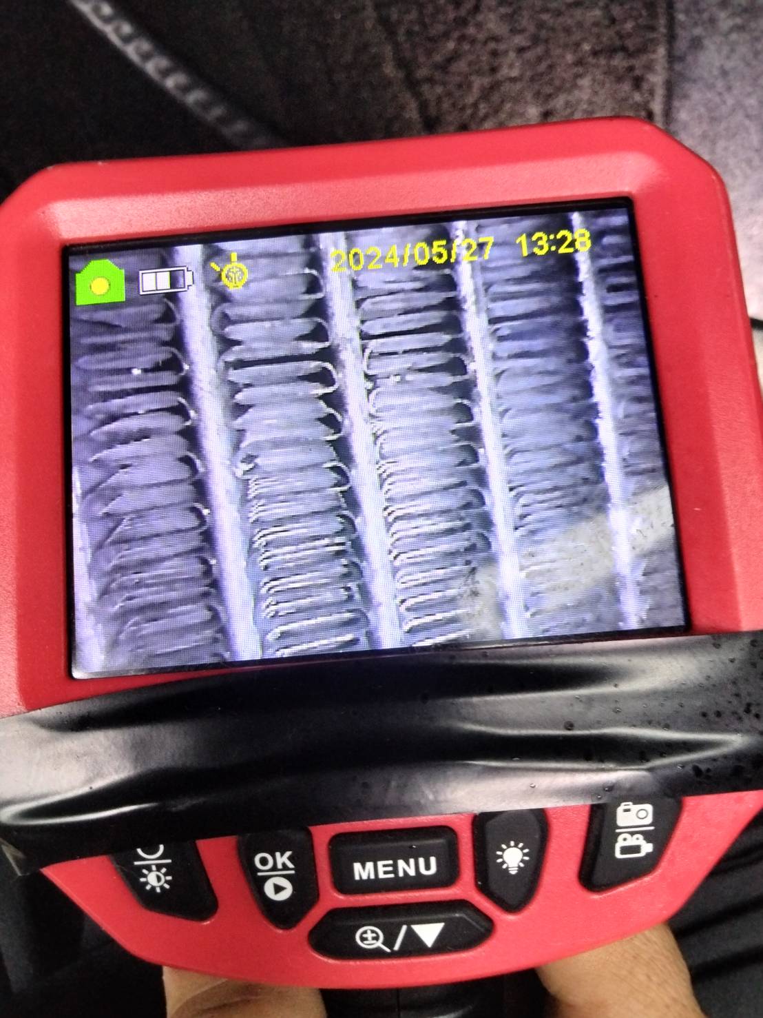 こちらはエアコン本体を、当社のカメラ付きの特殊工具で見た写真です。こういう風に目で見て汚れを確認しないとどこが汚れているのかわからないですよね⁉️ 一見すると汚れていないよう見にえますがいざ洗浄してみると実は汚れているのですよ😅