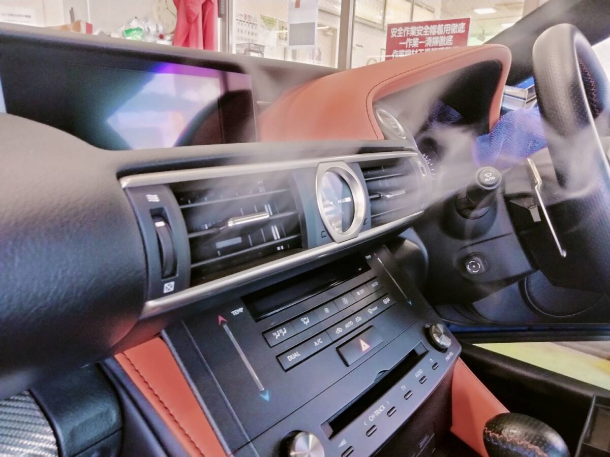 宮崎のタイヤ館 様よりご依頼いただきました、レクサスRCFのカーエアコンクリーニングの様子ですびっくりマーク