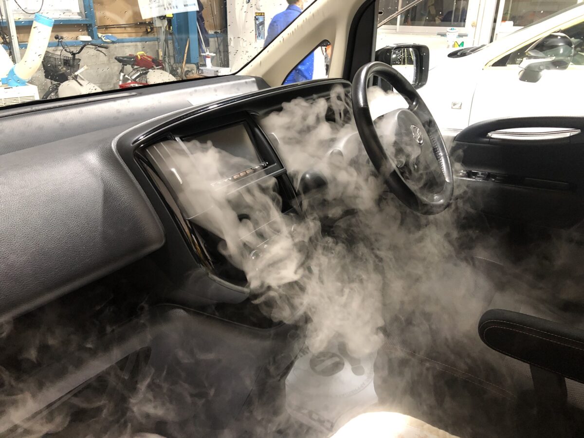 久留米市よりご依頼いただきました,セレナのカーエアコンクリーニング の様子です。