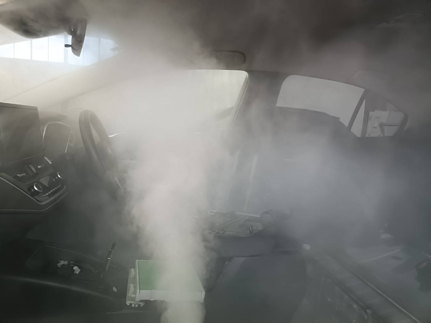 仕上げにG-MISTを使用して車内全体を除菌し、消臭効果をプラスしました。これにより、車内は清潔で快適な空間に生まれ変わりました。